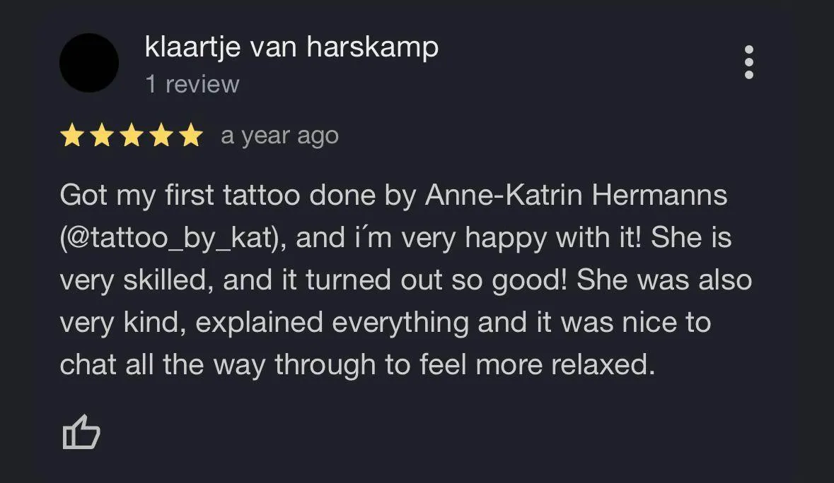 Hi my name is Kat and I am a tattoo artist based in Malmö. My tattoo journey started end of 2019, shortly interrupted by the first long lockdown in the Netherlands. But I pushed through that, a move to Sweden and some more odds and don’t regret a thing.